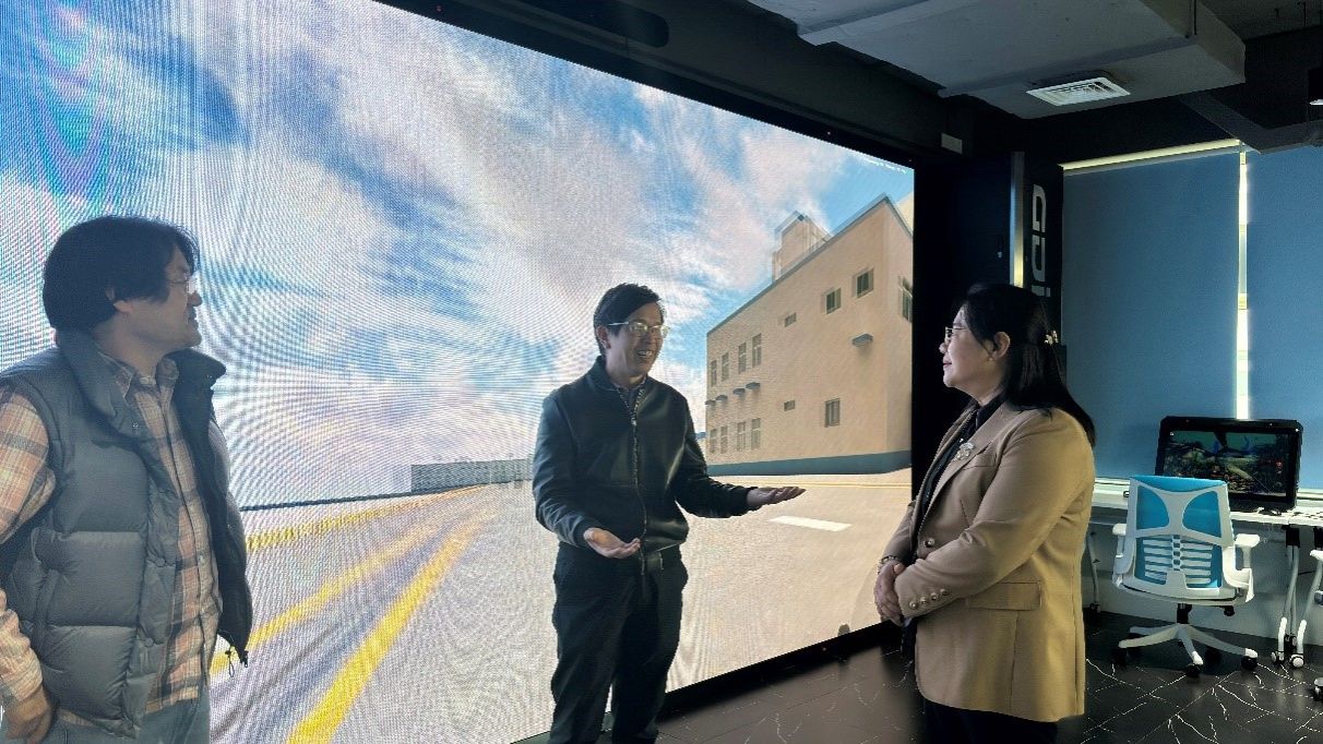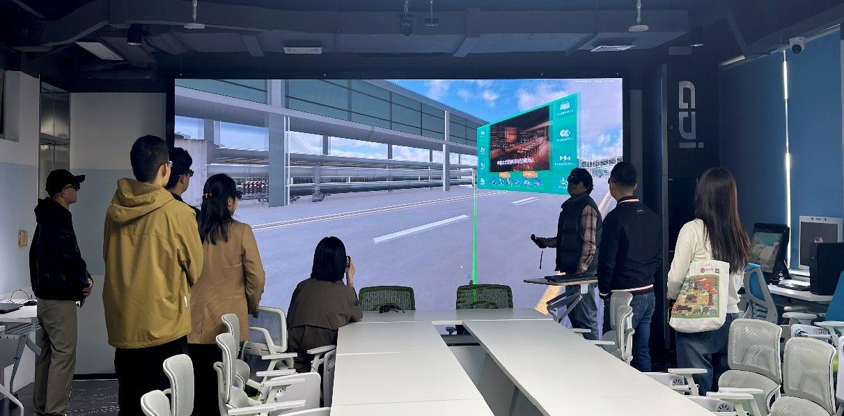 在C327虚拟仿真LBE大空间体验教学实验室,来宾重点考察了沉浸式空间模拟与实时交互系统,对其在建筑尺度感知、环境行为模拟等教学场景中的支撑作用表示赞赏。
