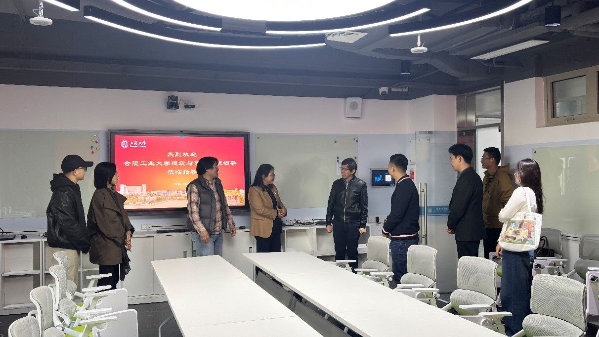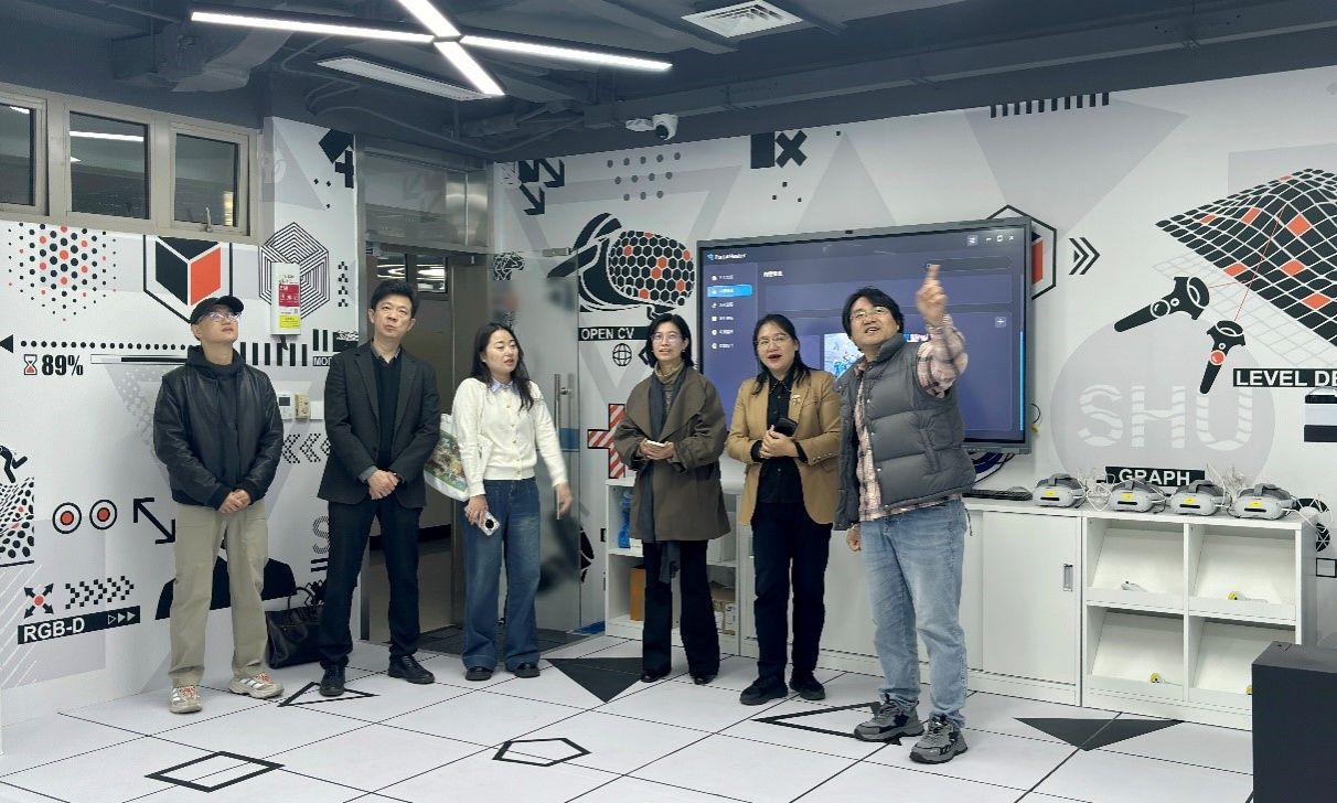 随后,合肥工业大学一行参观了虚拟仿真实验中心的多间特色实验室。在C322虚拟仿真沉浸式体验教学实验室,来宾详细了解了交互式三维可视化系统在建筑方案展示与空间体验教学中的应用,高度认可该实验室在推动“艺术与科技融合、设计与技术协同”方面的平台价值。