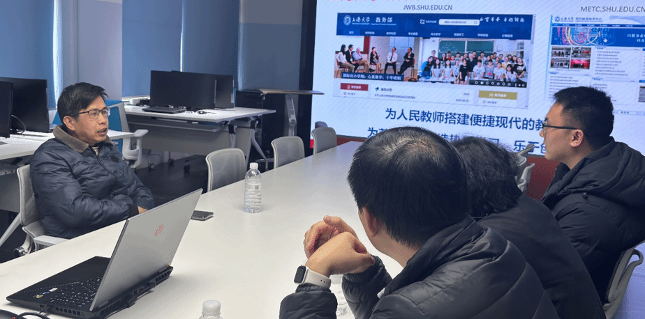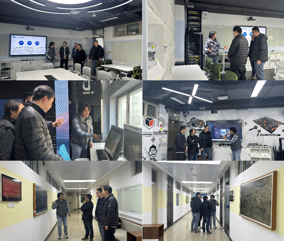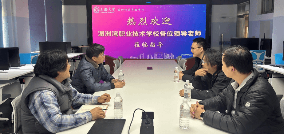 2025年12月30日,湄洲湾职业技术学校副校长李光率中层管理团队一行来访上海大学虚拟仿真实验中心,围绕虚拟现实、数字媒体等专业领域,专项调研我校虚拟仿真实验教学中心的建设、管理及校企协同育人机制。教育技术中心主任陈章进、实验室负责人单子鹏及虚仿中心现场负责人朱俊接待了来访嘉宾。双方在宝山校区虚拟仿真中心C329实验室举行专题研讨会,并进行了实地参观。